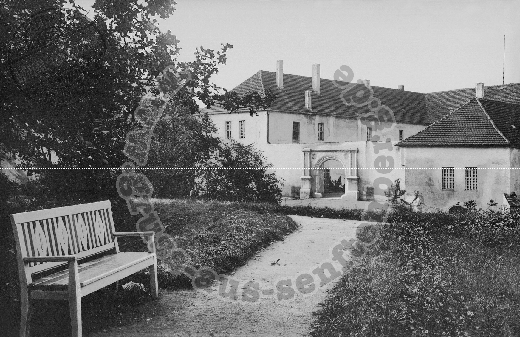 wurde auf der Glasplatte schon etwas stärker manipuliert. Dennoch ist diese Grafik allen bislang archivierten Versionen und auch der weiter unten folgenden, die allesamt von Ansichtskarten stammen, vorzuziehen. Sie hat im Vergleich etwas mehr Bildinformation was jedoch bei dem Motiv nicht so wirklich wichtig ist. Nachfolgend die vierte Inkarnation der Ansicht, die mit dem oben erwähnten Rahmen ausgestattet wurde: